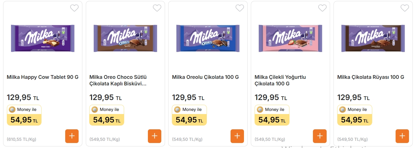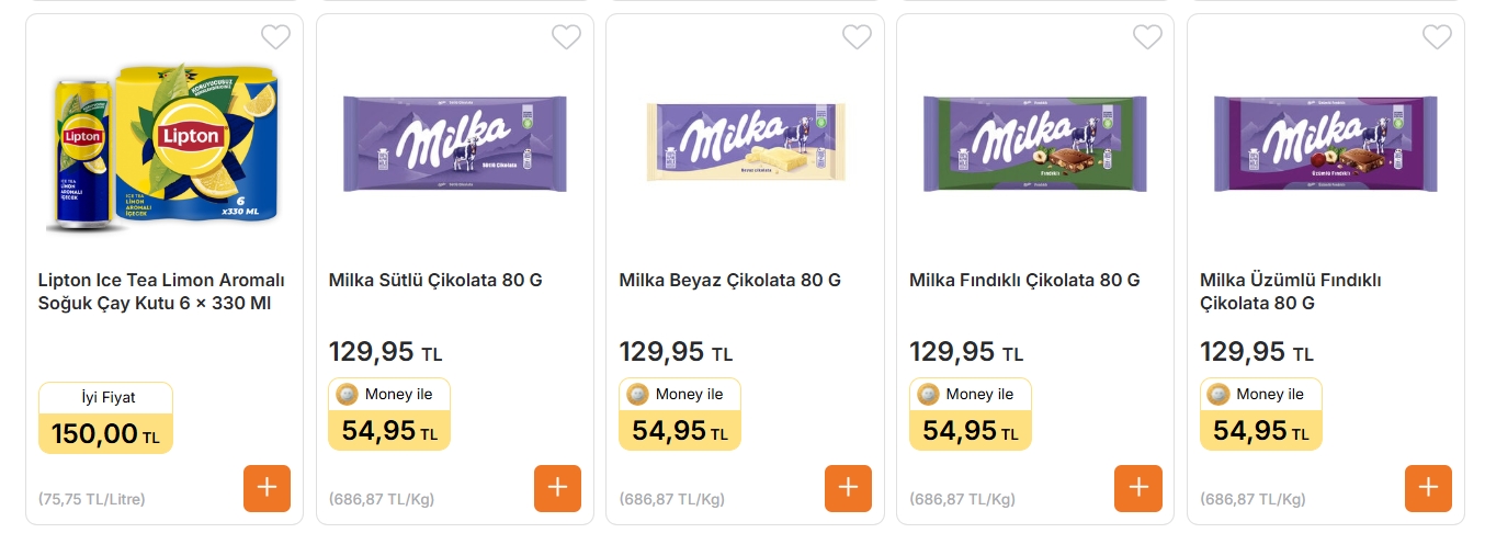 Milka Sütlü Çikolata 80 g – 129,95 TL (Money Kart ile 54,95 TL)