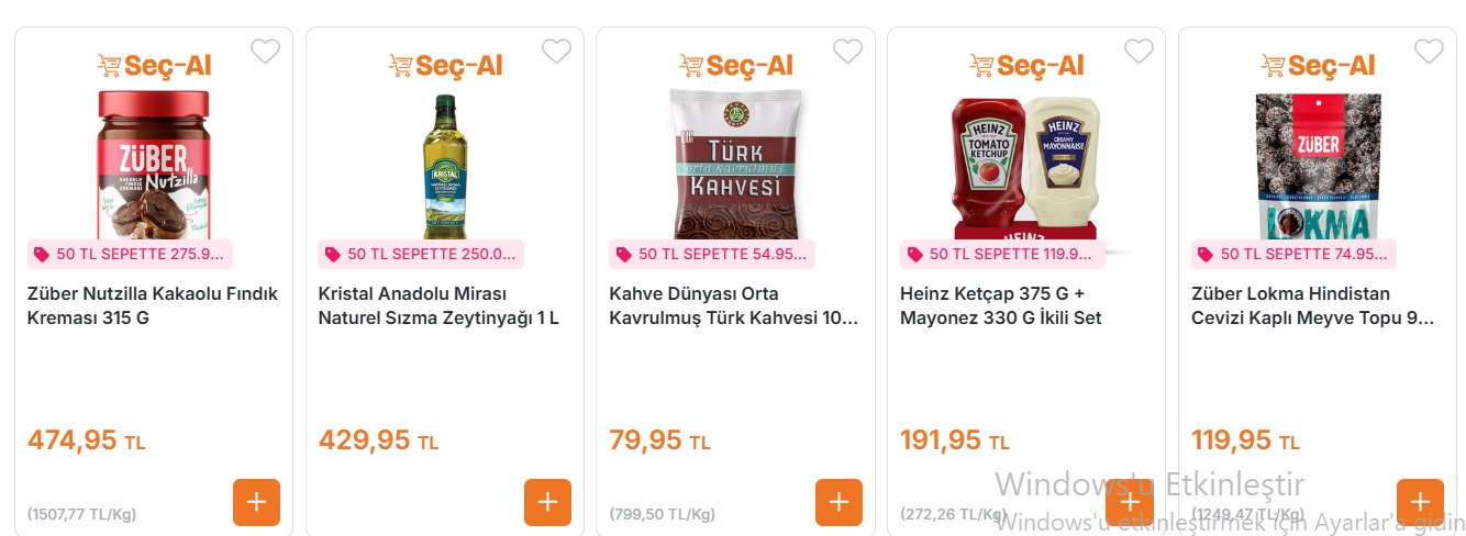 İndirimlerden yararlanmak için sepete eklenen ürünler haricinde en az 50 TL’lik alışveriş yapılması gerekiyor.