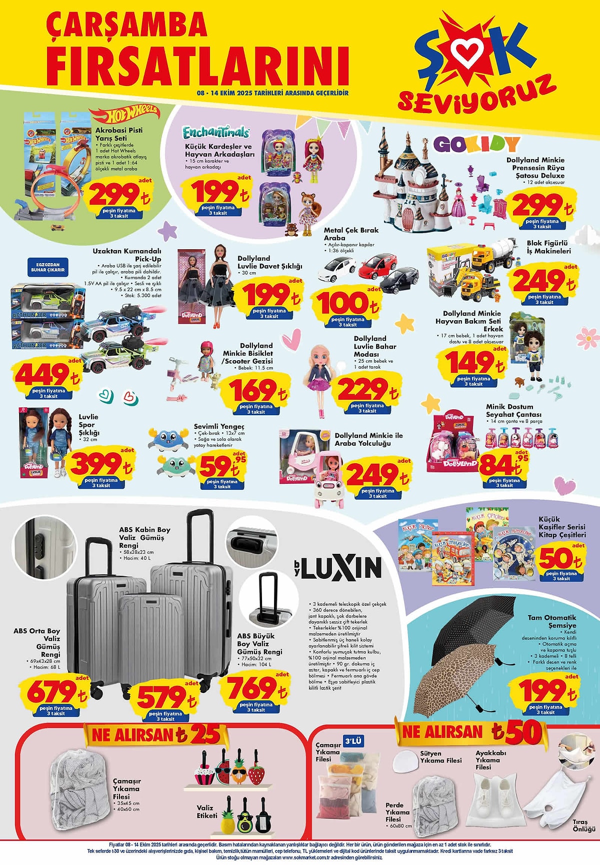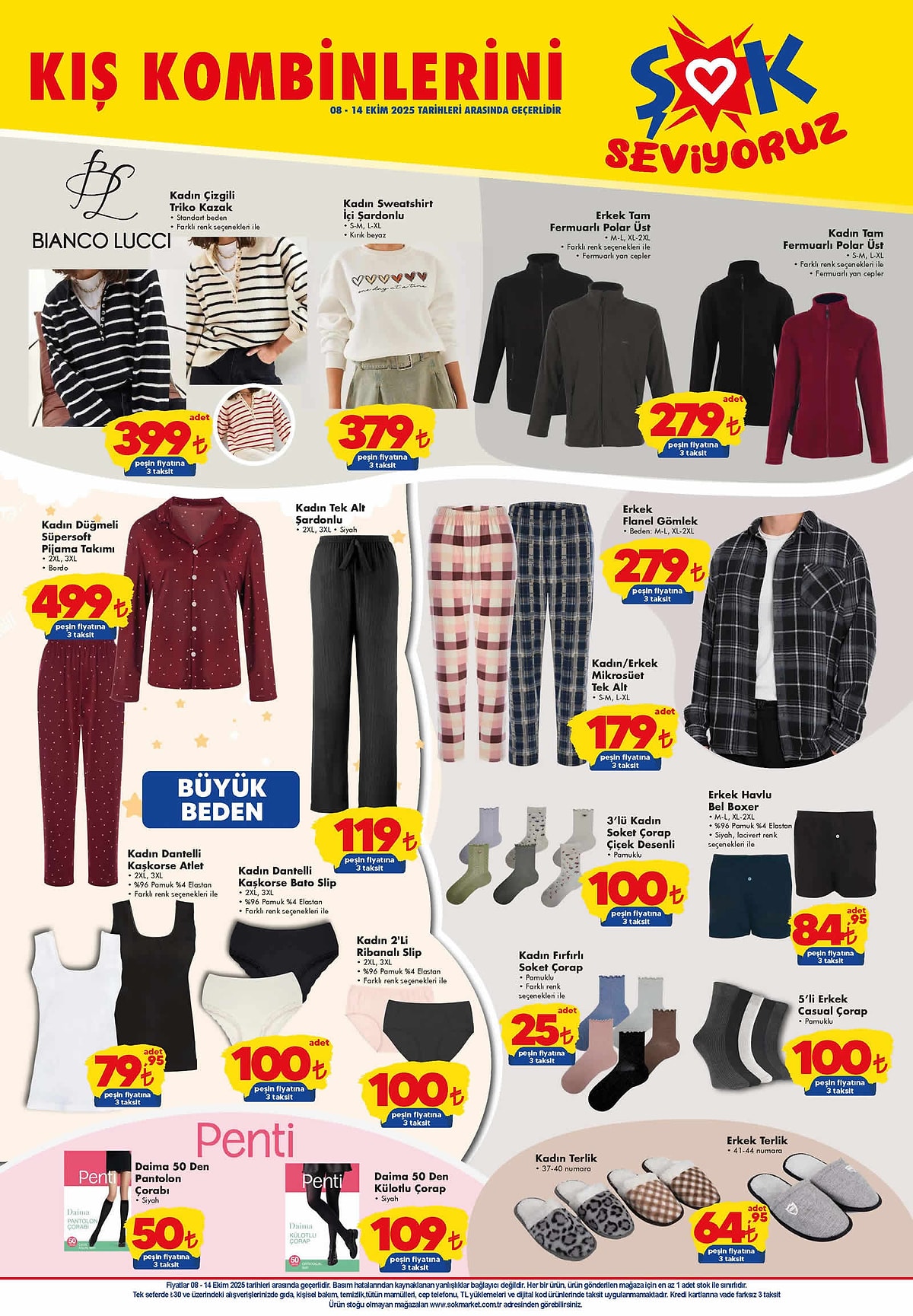 ŞOK Market, 8-14 Ekim 2025 tarihleri arasında geçerli olacak yeni aktüel ürünler kataloğunu yayımladı. Kış mevsimine hazırlık yapmak isteyen tüketiciler için giyimden ısıtıcılara, küçük ev aletlerinden oyuncaklara, kozmetik ve temizlik ürünlerinden temel gıdaya kadar birçok kategoride dikkat çeken indirimler sunuluyor. Özellikle koltuk ve halı yıkama makinesi, ısıtıcı modelleri, kışlık pijama ve kazaklar ile uygun fiyatlı gıda ve kişisel bakım ürünleri öne çıkarken, kampanyanın stoklarla sınırlı olacağı ve sadece belirtilen tarihlerde geçerli olacağı duyuruldu.